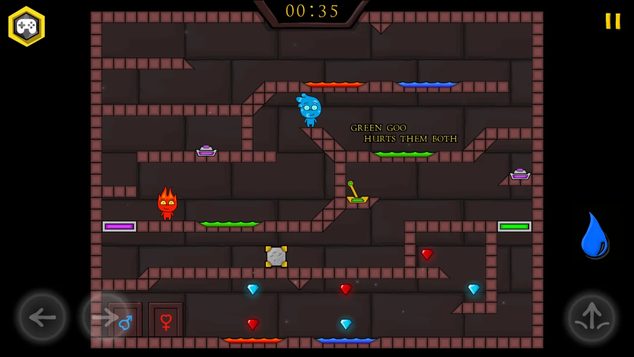 Embark on an unforgettable cooperative adventure in Firegirl and Waterboy: Forest Temple, a brilliant puzzle-platformer that celebrates the power of teamwork. This iconic game challenges you and a partner to guide two elemental heroes through the intricate and trap-filled chambers of an ancient forest temple. By mastering their unique and opposing abilities, you'll solve clever puzzles, overcome dangerous obstacles, and work in perfect sync to reach the exit of each level. Firegirl, as her name suggests, is immune to fire and can walk through pools of lava unharmed. However, water is deadly to her. Conversely, Waterboy can safely navigate through water, but will be extinguished by any touch of fire. This fundamental difference is the heart of the game's ingenious puzzle design. You cannot succeed alone; collaboration is not just encouraged, it is essential. The levels of the Forest Temple are masterfully crafted to test your cooperative problem-solving skills. You'll encounter levers that need to be held down by one character so the other can pass, platforms that move based on the combined weight of both heroes, and light-beam puzzles that require careful coordination to activate doors and bridges. Many puzzles involve manipulating the environment using the characters' elemental properties. Waterboy might need to push a block across a water channel, while Firegirl activates a switch on the other side of a lava pit. This constant interplay between the two characters makes for a deeply engaging and rewarding gameplay experience. The game can be played solo, with one person controlling both characters simultaneously—a true test of dexterity and mental multitasking. However, it truly shines when played with a friend, with both players sharing a single keyboard or playing online. Communication and synchronized timing are key as you call out instructions and plan your moves together. The charming art style, atmospheric music, and satisfying puzzle mechanics have made this series a beloved classic. It's a fantastic game for friends, couples, and family members looking for a fun and mentally stimulating activity to enjoy together. It teaches the value of cooperation and highlights how different strengths can be combined to overcome any challenge. Prepare to put your minds together and guide this dynamic duo to safety!